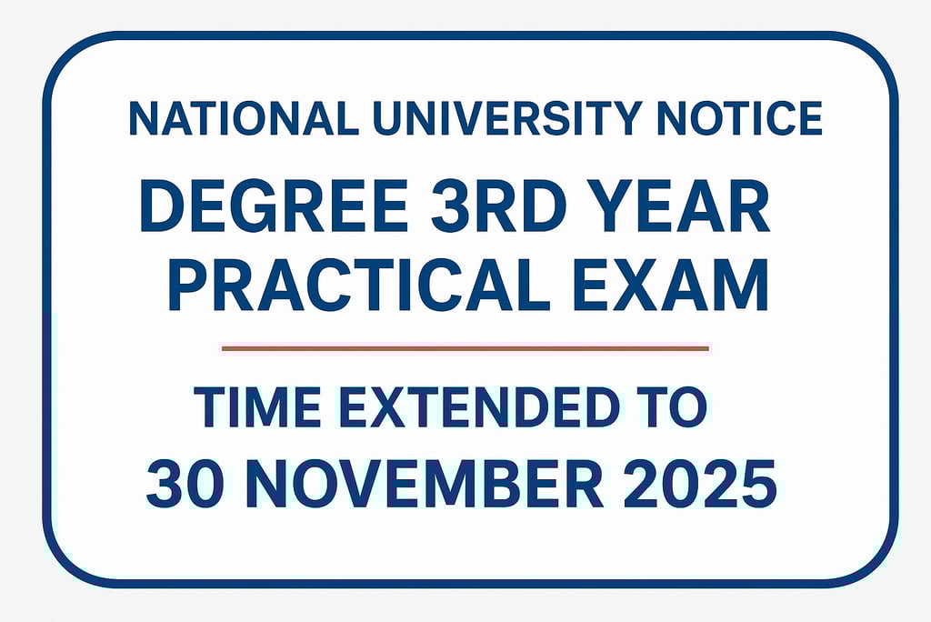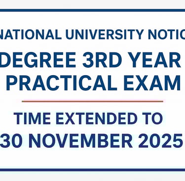 ডিগ্রি পাস ও সার্টিফিকেট কোর্স ২০২৩-এর ৩য় বর্ষের প্র্যাকটিক্যাল পরীক্ষা গ্রহণের সময়সীমা বৃদ্ধি সংক্রান্ত জাতীয় বিশ্ববিদ্যালয়ের জরুরি নোটিশ (20/11/2025) । lNational University Notice: Extension of Practical Exam Time for Degree (Pass) & Certificate Course 2023 – 3rd Year (Updated on 20/11/2025)